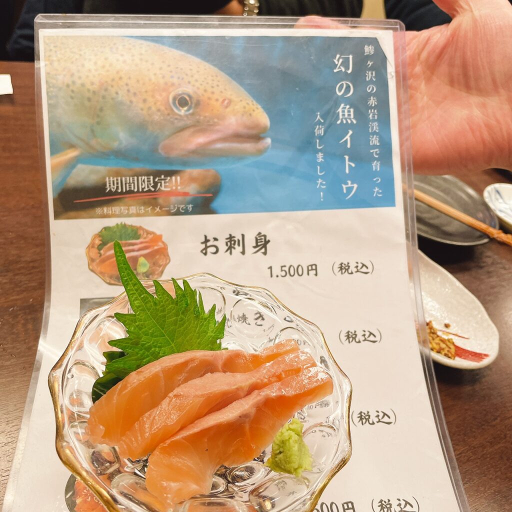 初めて口にする幻の魚「イトウ」のお刺身は絶品でした。